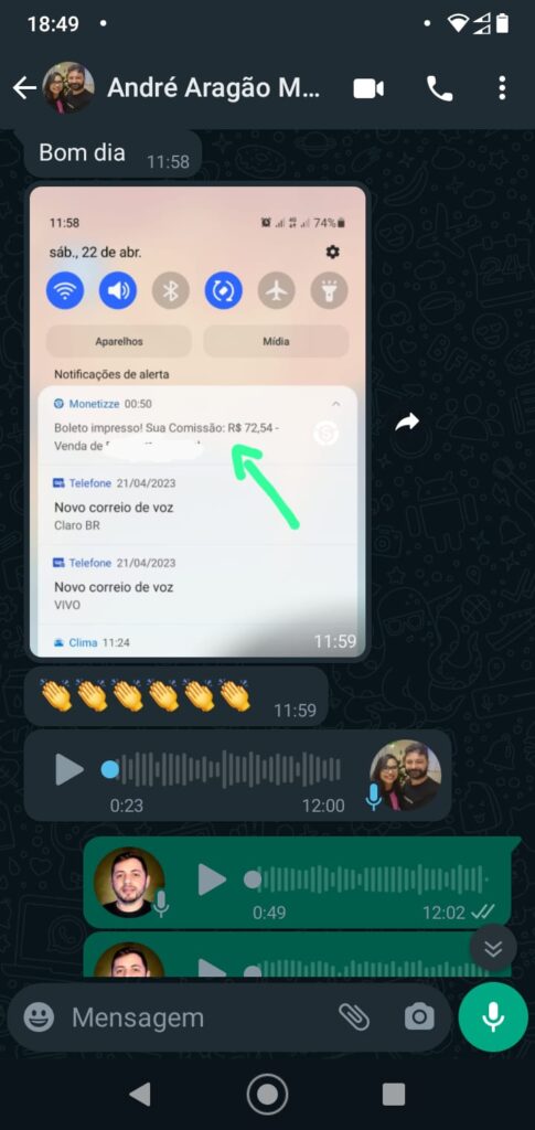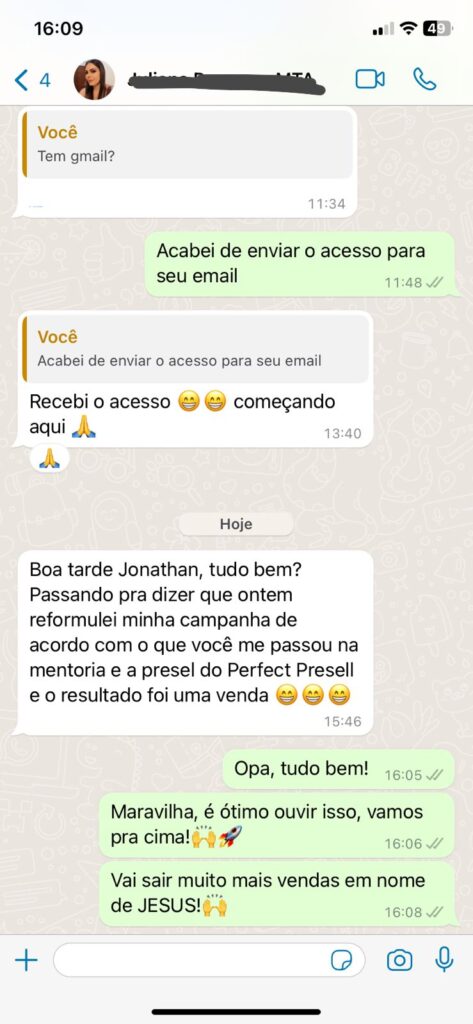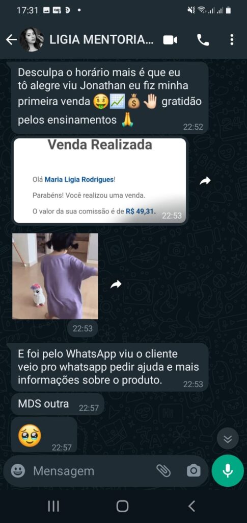 Olá Jonathan boa noite desculpe pelo horário mais quero mostrar minha gratidão e felicidade pela minha primeira venda na ClickBank em menos de 24 horas de anúncio gastando ali pouquinho como você ensinou . Gratidão de vdd e sem seu empurrão e conhecimento pra passar para mim não seria possível…